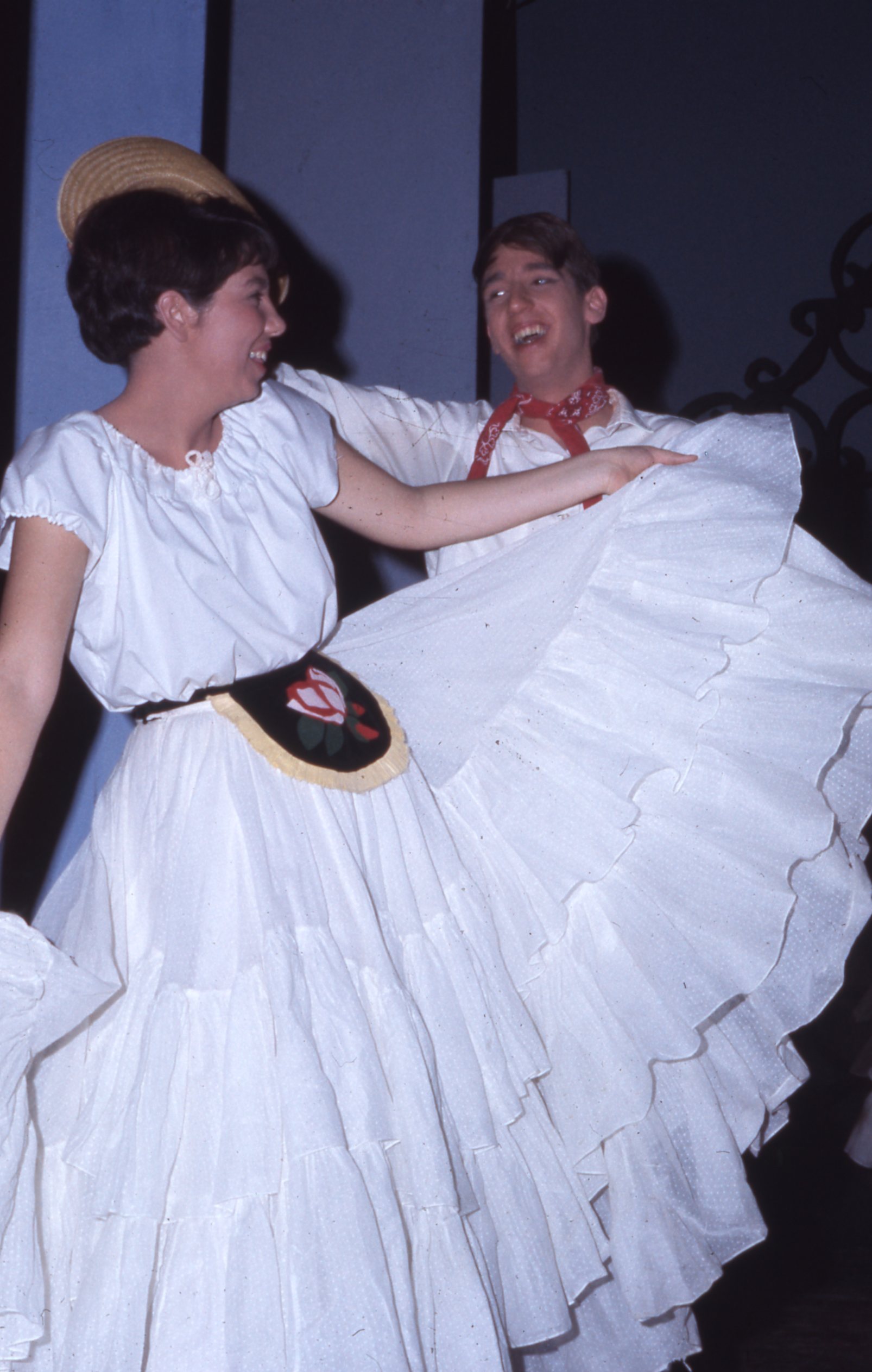 - Two Pacific University students dressed in white costumes, most likely for a theatre performance. The slide was printed in November, 1968.