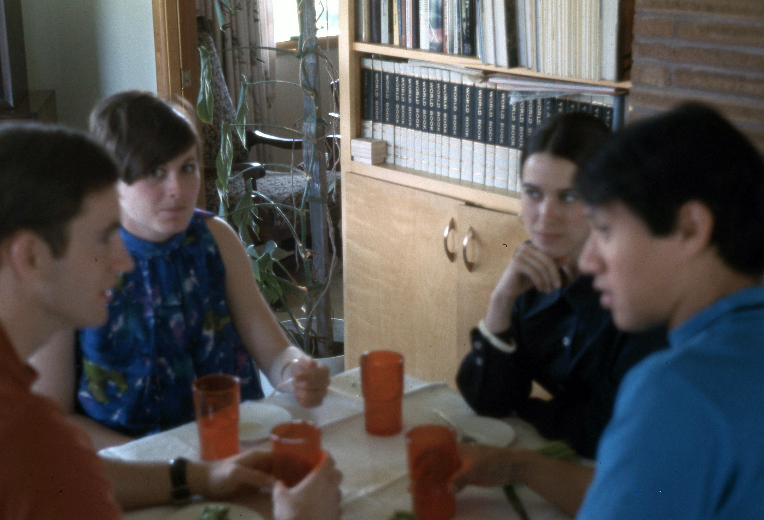 - A group of Pacific University students eating at a table at Professor Fred Scheller's house in Aloha, Oregon, circa 1970. Scheller was an advisor to Haumana O Hawai'i (Hawaiian Club), and appears to have hosted many social events for Hawaiian students around this time period.
