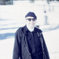 - Pacific University professor Fred Scheller on a ski trip to Mount Hood in February, 1971. This appears to have been part of an annual trip organized by Pacific's Haumana O Hawai'i (Hawaiian Club), led by Scheller. The original image is overexposed.