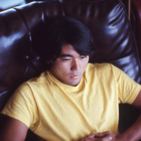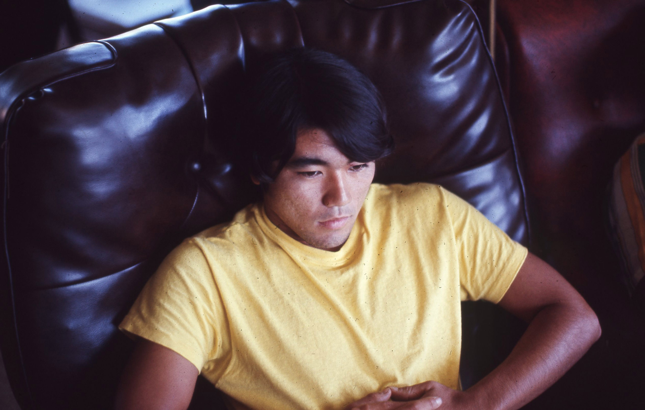 Pacific University student Lyle Ikehara (Class of 1975) sitting on a leather chair at a Haumana O Hawai'i (Hawaiian Club) event in the fall of 1971. This photograph appears to have been taken at the home of Professor Fred Scheller. Scheller was an advisor to Haumana O Hawai'i, and hosted many social events for Hawaiian students in his home around this time period. The original slide was printed in November, 1971.