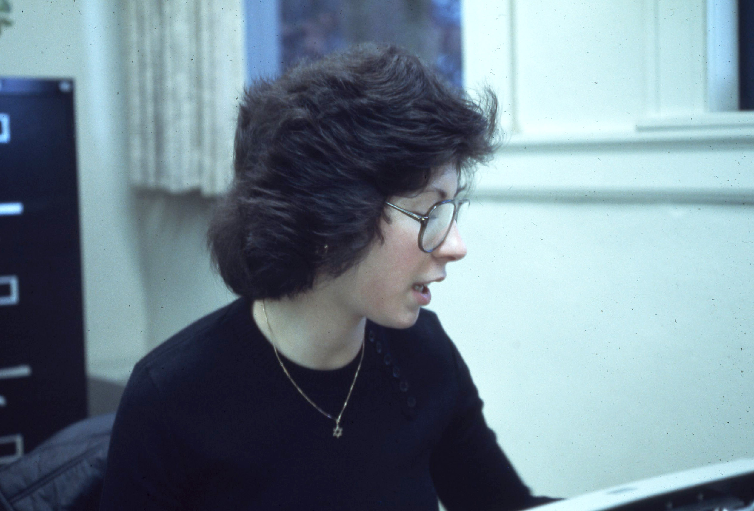 - A woman working as a secretary or other administrative support staff, in an office of Pacific University. She is sitting at a typewriter and is wearing a Star of David pendant. The original slide was printed in February, 1978. For another view of the same woman, see: PUA_PeoSlides_257