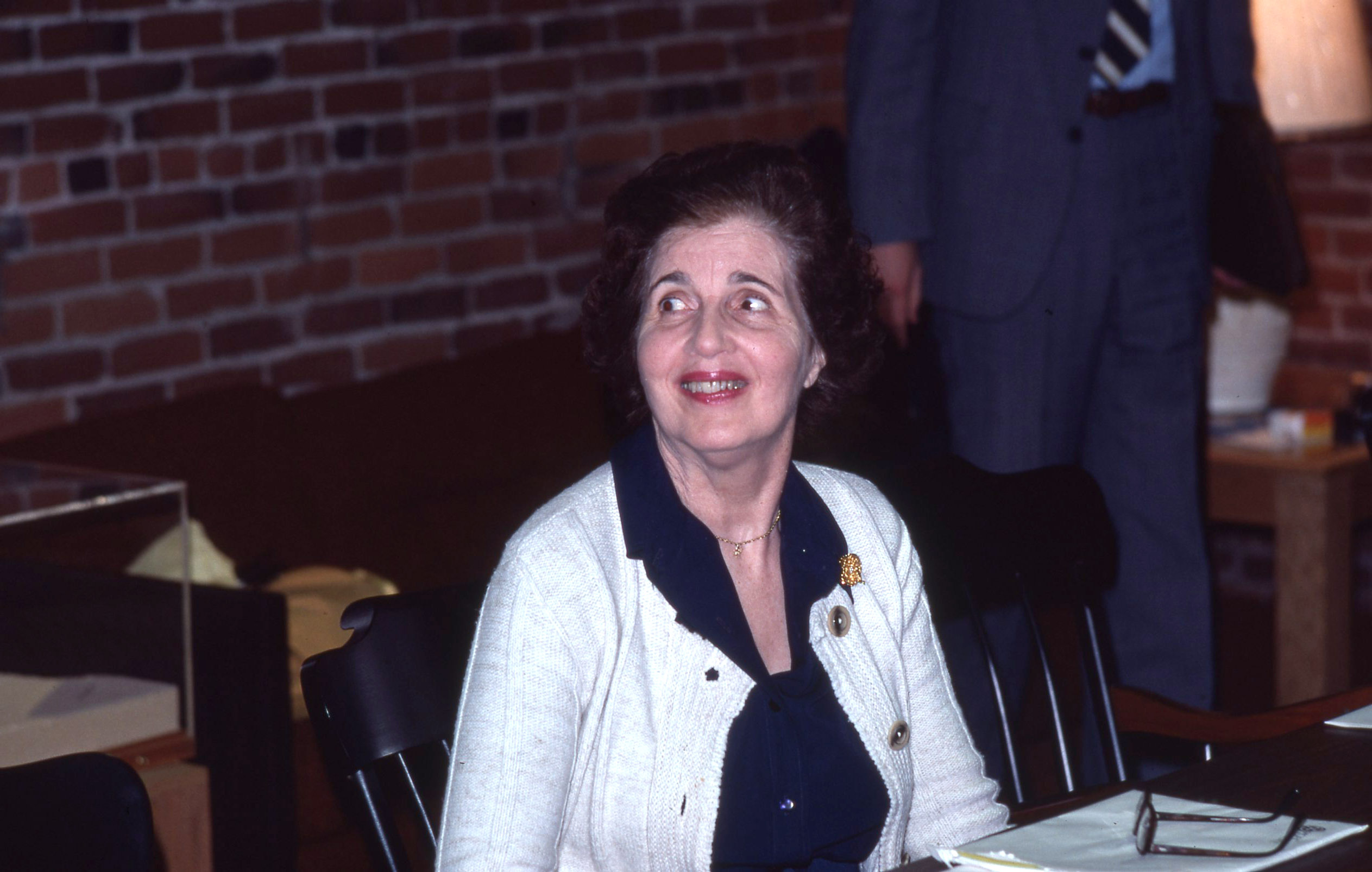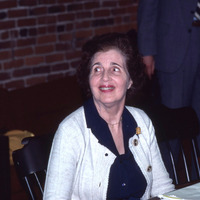 - A woman in a white sweater attending a Pacific University Board of Trustees meeting on the third floor of Marsh Hall. This is one of a set of photographs that were all taken during the same meeting. The original slide was printed in March, 1979.