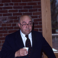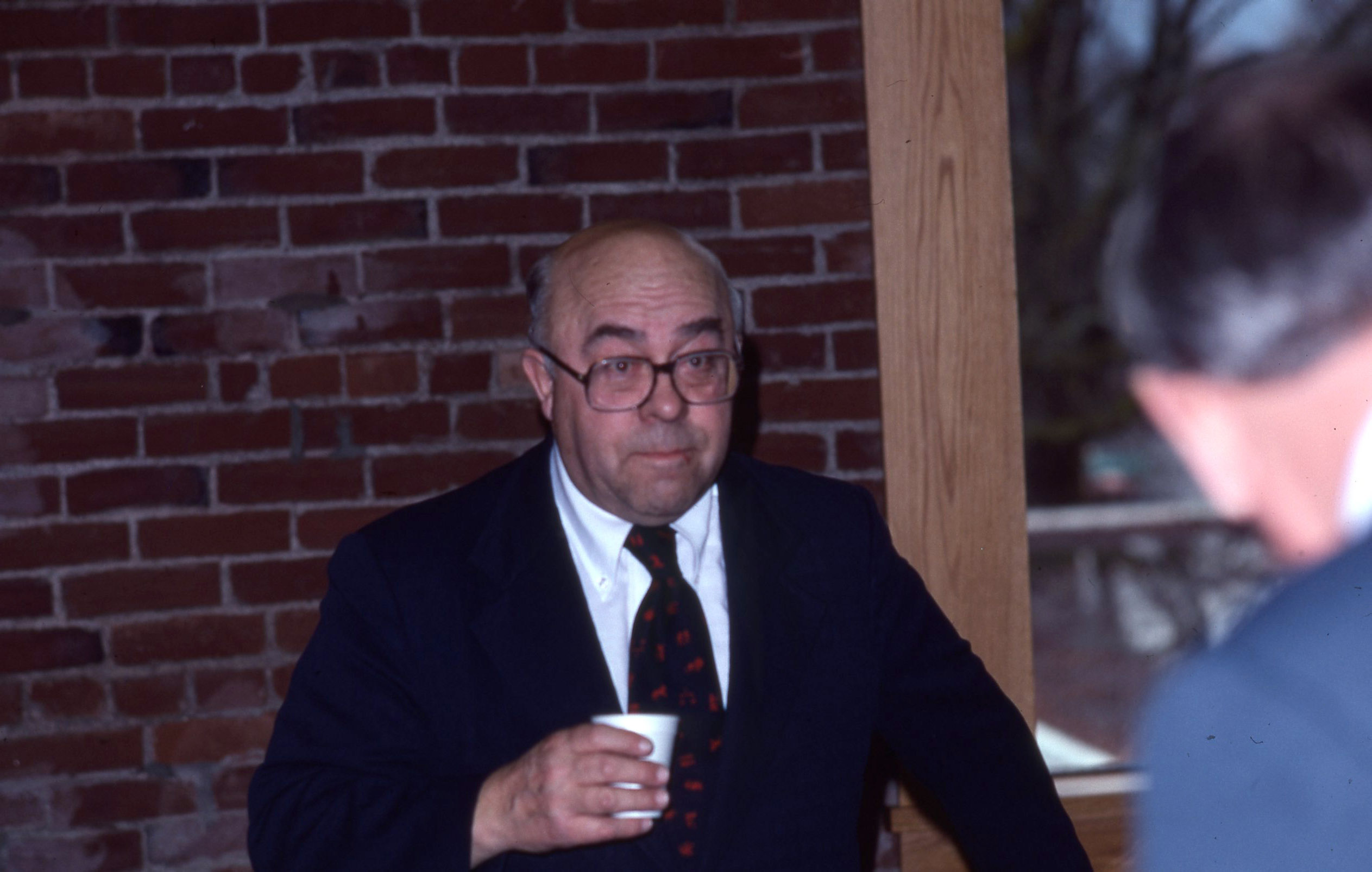 - A man attending a Pacific University Board of Trustees meeting on the third floor of Marsh Hall. This is one of a set of photographs that were all taken during the same meeting. The original slide was printed in March, 1979.