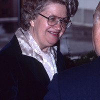 - Professor Patricia Sobottka, Assistant Secretary of Pacific University's Board of Trustees, attending a Trustees meeting on the third floor of Marsh Hall. Sobottka was a faculty librarian. This is one of a set of photographs that were all taken during the same meeting. The original slide was printed in March, 1979.
