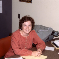 - A woman, probably a clerical worker at Pacific University, possibly in the library. The original slide was printed in July, 1979.
