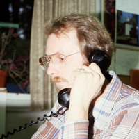 - A man, probably a member of Pacific University's staff, sitting in an office on campus while using a telephone. Based on other photographs of what appears to be the same man, this may be Mike Brinkman, Director of Pacific University's AV (Audio-Visual) or "ALERT" Center. The original slide was printed in October, 1979.