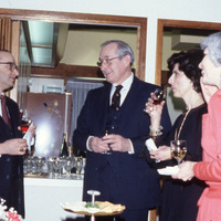 - Pacific University President James Miller (center) at a reception, with others who might be alumni standing nearby. The original slide was printed in February, 1980.