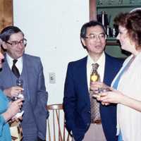 - Several men and women who are likely staff and/or alumni of Pacific University, attending a reception. The original slide was printed in February, 1980.