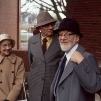Several older attendees (possibly donors) at the dedication of Pacific University's "Chemistry Unit of the Science Complex," later named Murdock Hall. This event took place on January 22, 1981. According to the student newspaper: "The new chemistry unit features 24 person stations in two laboratories and 12 stations in another lab" (The Index, Jan. 16, 1981). This is one of a set of images taken at the dedication.