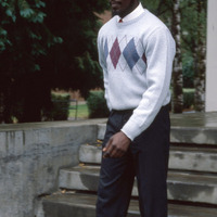 - A man, presumed to be a Pacific University student based on other similar portraits made during the same time period, walking down the steps of Washburne Hall. This photograph was likely taken by a Pacific staff photographer for use in a campus publication, and probably dates from 1983. For a related image, see: PUA_PeoSlides_515