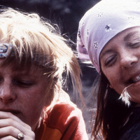 - Two women, probably Pacific University students, wearing bandanas while chewing on pieces of straw or oats. They might have been participating in an outdoor program. This was likely taken by a Pacific staff photographer for use in a campus publication, circa 1983.