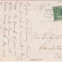 [front] Forest Grove High School – Bryant Photo [back] Mrs Garfield Gilmore Sandstone Minn Postmarked Forest Grove Jan 27 1914 with a one cent stamp. My dear Mrs Gilmore; thank you for card received so long ago. We speak of you so often and hope you’ll soon come back. We are having rather more rain than we need, but, it is warm. Our Baby will be a year old tomorrow. Sincerely Nettie White