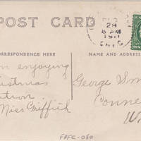 [front] No 20 Picnic Ground Forest Grove Ore [back] [ink] George Smith Connell Wa? Postmarked Forest Grove ??month 28 1911? With a one cent stamp Am enjoying Christmas vacation Miss Griffith