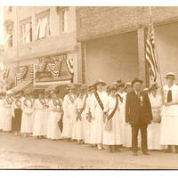 Women in a column parade down Main Street to celebrate the success of Liberty bond sales in Forest Grove