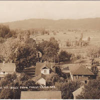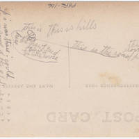 [front] No 13 Looking Toward The Hills From Forest Grove, Ore. [back] This is the gravel yard This is the little house This is hills This is the road This is the grove we had pick nicks (?) was there I could tell you some of the buildings you can see some of the tomb stones where that little building is I (?) the pencil by the little house