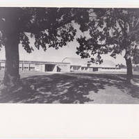 Picture taken from Pacific Avenue looking toward the front of the school. A large oak tree is on each side of the picture.