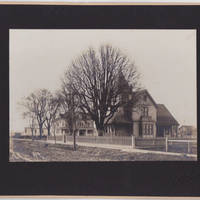 Transcription of notes written on the photograph: [back] [blue ink] Up town; [printed sticker] In the booklet published by “Friends of Historic Forest Grove” entitled “Historic Homes of Forest Grove” this house id identified as the Barnes House and is located at 1504 Elm Street. Further description is found on page 12 of the reference booklet.