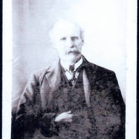 Photo of older man, bust portrait, wearing suit, hand tucked in vest. Photo is a reproduction of a reproduction, so very poor quality. William Henry Fadden Jr. (1843-1931)