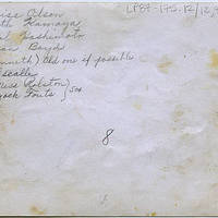 [back] [pencil] Louise Olson. Ruth Kamaya. Paul Hashimoto. Jean Boyd. (Kenneth) Old one if possible. Escalle. Miss Ralston, Jack Fouts } 50 [cents].