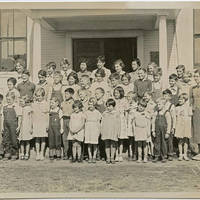 Black and white image of students standing in front of their school. With two rooms, Kinton was one of the larger schools in the county, and one of the first to have offered high school grades outside of the larger communities such as Hillsboro. By the time of this photo, high school students were being bused into Hillsboro for classes. The teacher at the time of this photo was identified as Miss Helen Schneider, most likely the woman standing to the left at the back of the group. See WCMpic_013090 for another image of this school. Though museum records identify these images as being taken on the same day, October 5, 1936, they most likely represent two different school years. The old school building, long abandoned, can still be seen in Kinton.