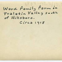 [back] [felt pen] Ward family farm in Tualatin Valley south of Hillsboro. Circa 1918.