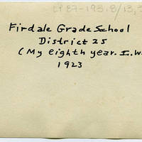 [back] [felt pen] Firdale Grade School, District 25. (My eighth year. I. W. W.) 1923