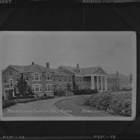A photograph of the Masonic and Eastern Star Home in Forest Grove, Oregon, as seen from the driveway on its southwest side. This facility opened as a retirement home funded by the Masonic Lodge of Oregon in 1922, housing sick and elderly Masons. In 1999, the retirement home moved to new premises on the north side of the property. The original buildings shown here were sold to the McMenamins hotel chain, which renovated and reopened the property as the Grand Lodge hotel in 2000.