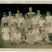 Group portrait of the students at the Timber school, with their teacher Ollie Bemis.