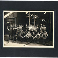 Group portrait of the men who worked for Southern Pacific's Red Electric line, which ran in the Willamette Valley and surrounding areas from 1914-1929.
