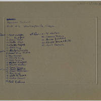 [back] [numbers correspond to numbers on front of photo] Jackson School Dist #9 Washington, Co, Oregon; Front Row: 1 - Bert Walters; 2 - Kinzer; 3 - Elmer Paine; 4 - Darton Mays; 5 - Ralph Paine; 6 - Eddie Krug; 2nd Row: 7 - Gladys Lincoln; 8 - Krug[,] Tillie; 9 - Dora Farnum; 10 - Minnie Krug; 11 - Vada Bettis; 12 - Ethel Kinzer; 13 - Blanche Walter; 14 - Dave Paine; Third Row: 15 - Pearl Bettis; 16 - Elmer Batcholder; 17 - Ben Krug; 18 - Walt Kinzer; 19 - Arthur Connell; 20 - Paul Exline; 4th Row: 21 - Ed Walters; 22 - Clarence Bettis; 23 - Grace Jackson; 24 - Alice Haunchild; 25 - Cecil Vankirk