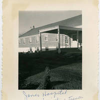 Photograph of the entrance to the maternity ward at Jones hospital. This building was opened in 1940, and was used in various forms until it was demolished in 1973 after being replaced by a new brick building. Jones Hospital later became Tuality Community Hospital.
