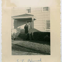 Leota Blunk stands in front of a building which may be the Jones Hospital in Hillsboro.