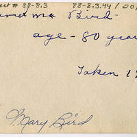 [back] grandma Bird; age - 80 years; Taken 19-18; Mary Bird