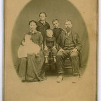 Studio portrait of the Wilkes family, including Mary Jane (Jackson) Wilkes, Elsie [baby], Tom, Bruce, Ellsworth, and Jabez Wilkes.