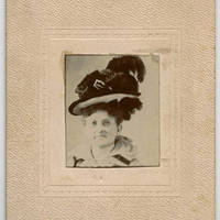 Portrait of Lizzy Dufer, wearing a large hat. Her brother was Oliver Holmes.