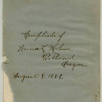 [back] Compliments of Anna L. Holmes; Portland; Oregon; August 8. 1886.