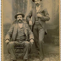 Studio portrait of two men, who are unidentified but appear to be brothers.