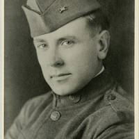 Black and white photograph of a man in an Army uniform from World War I. His hair is short and he wears a forage hat with a 'U.S.' over crossed rifles. Plapp arrived in Portland, Oregon, after his service in World War I, eventually settling in Hillsboro. This image is part of the Herbert E. McMullen bequest. McMullen was a local photographer who also collected images of local life from other photographers.