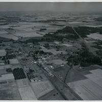 Aerial view of North Plains, Oregon, with Highway 26 running along the right side of the photograph.