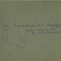 [back] [pen] [pen] Marguerite, Maryellen, Vesta - Charles Mertz (in truck.) Approx. - summer 1921 for 4th of July parade. [pencil] 4.30 So. 14. 1 - 50. N. G.