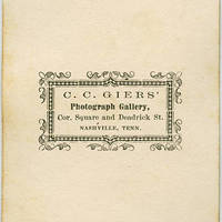 Unknown photographer, C. C. Giers' Photograph Gallery, Nashville, Tennessee