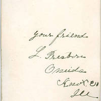 [back] [ink] your friend, L. Preston. Oneida, Knox Co., Ill. [pencil] no. 13