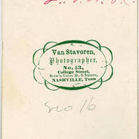 [front] [red ink] Your friend. [back] [red ink] M. Scott [?]. Si/.. V. [?] A. D. C. [stamp] Van Stavoren, Photographer, No. 53, College Street, Betw'n Union St. & Square, Nashville, Tenn. [pencil] No. 16
