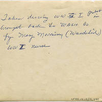 [back] [pen] Taken during WWI - probably in Europe, brought back to Wash. CO. by Mary Morrissey (Wunderlich), WWI Nurse.