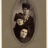 Three women known as the 'Three Freshies' at Pacific University on January 8, 1903. They are identified as Wilhelmina (Minnie) Heidel, Lilla Irvin, and Esther Silverman.