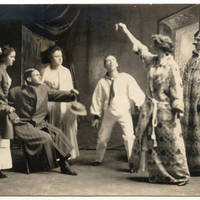 The cast of the May 1911 dramatic production 'The Schoolmistress' at Pacific University included members of the Sophomore class Margaret Lowell, Earl Hanse, Ruth Gaylord, Archie Markee, Genevieve Courtney, and Bill Livingston.