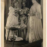 - Three costumed women, possibly in Heritage Hall at Pacific University.