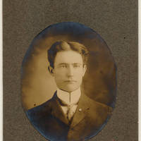 Copy of a portrait of Victor Emmanuel Emmel, from Schools, Oregon, who graduated from Pacific University in 1903 and went on to study at Brown University. After graduating with a Ph. D. in 1906 he taught 'Histology and Embryology' at Washington University in St. Louis, Missouri. There is a newspaper article about him pasted to the back of the photograph.