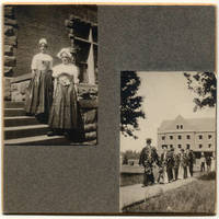 Two photographs pasted onto a card, one of two students identified as Alice Sewell and Christine E. Wilson, and the other of a graduation procession. Alice Eleanor Sewell attended Pacific University's music conservatory until 1909.