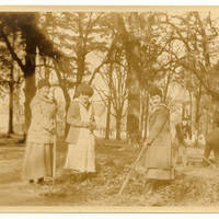 Students raking leaves